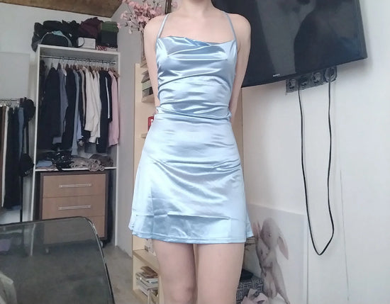 Enter the world of our trendy summer dress, a loose-fitting dress with an open neckline and thin satin straps. It features a ruffled collar, thin straps and a satin design. Pair it with a choker necklace and bold print ankle boots for an eye-catching look.